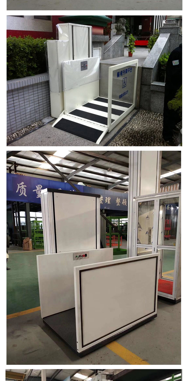 無障礙升降機:是為殘疾人專門設計制造的升降機。為方便殘疾人出行及觀光,在社區,醫院,學校,賓館,酒店,公共場所等地方。旅游觀光梯通道的自動扶梯旁,安裝了無障礙升降機。無障礙升降機可容納輪椅車出入,殘疾人或行動不便者只需按一下兩端的求助按鈕,值班人員就會立刻開啟自動升降機.